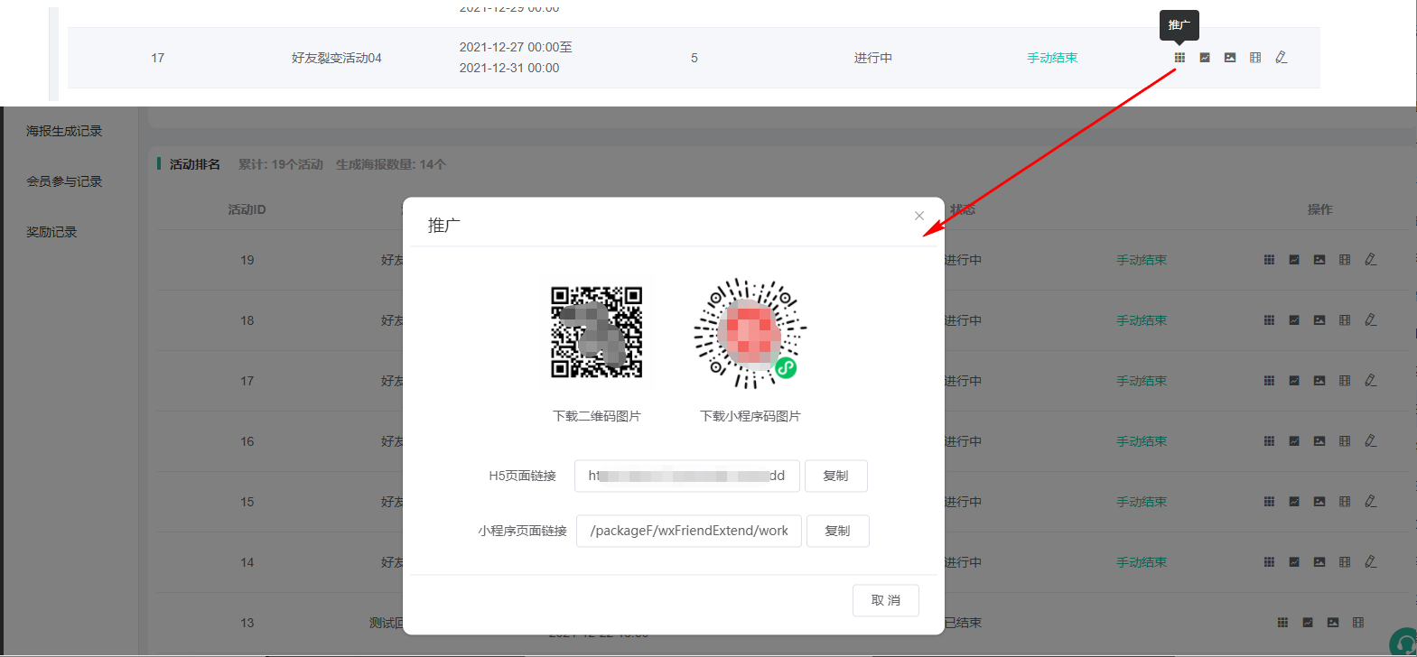 2、获取推广链接、二维码
